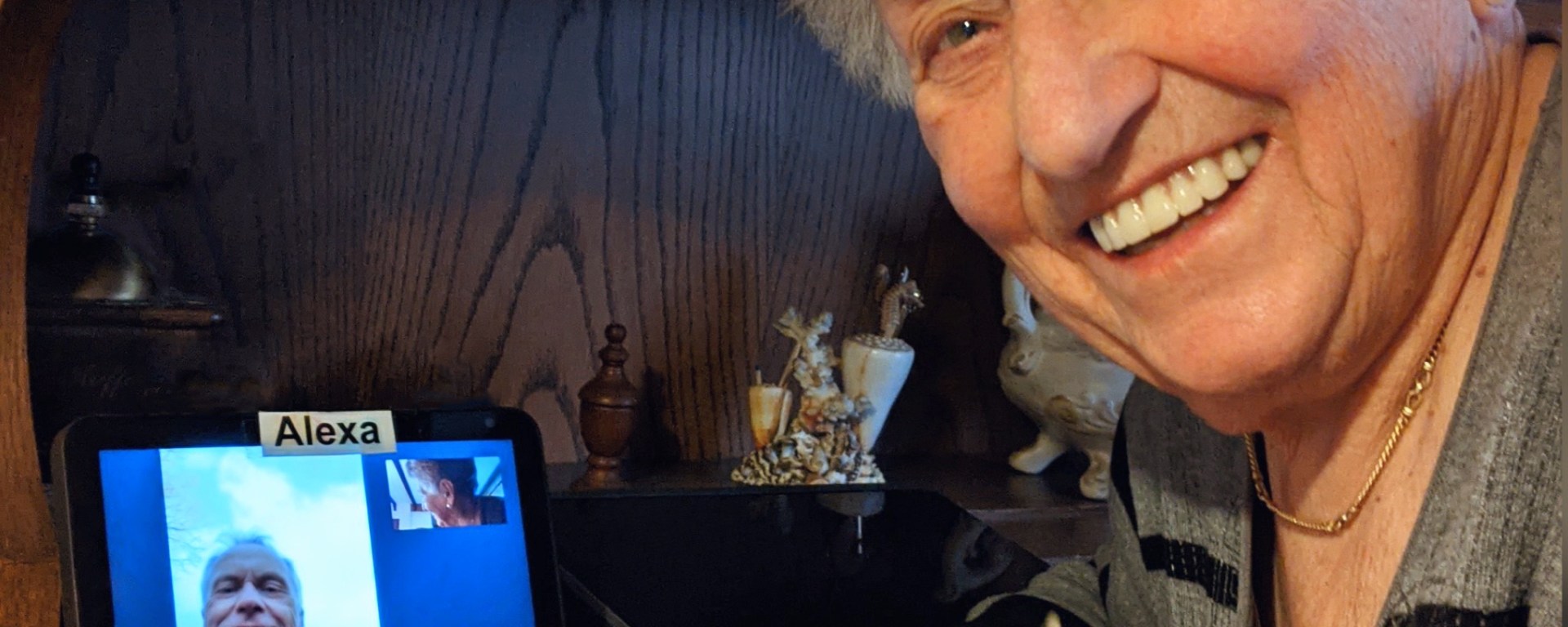 - Jederzeit Video-Telefonieren, ohne ein Gerät bedienen zu müssen: Dank der Drop In Funktion von Alexa können wir uns jederzeit direkt von unseren Smartphones auf Alexa schalten und stehen so „im Wohnzimmer“ der Großmutter. Sie muss hierzu keinen Knopf betätigen und auch keinen Sprachbefehl geben; der Anruf wird automatisch angenommen. Natürlich ist es auch möglich, die Person den Anruf aktiv annehmen zu lassen, wenn das gewünscht ist. Videotelefonie ist für uns viel persönlicher als ein normales Telefonat. Meine Großmutter kann mir so sogar Fitnessübungen über den Bildschirm nachmachen und mir Dinge aus ihrem Haus wie Briefe oder Postkarten über die Kamera zeigen.
